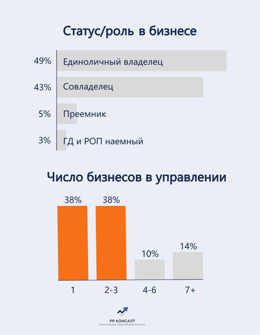 Из исследования АРБ Про: предприниматели сегодня это мужчины и женщины 40–64 лет, большинство из которых ведёт 1–3 бизнеса (38 %), управляют компаниями в самых разных отраслях — от FMCG до ИТ, Hospitality и инвестиций. Это люди — локомотивы экономического движения, лидеры, формирующие рынки и задающие стандарты. И вот, реальные аспекты, которые их волнуют. 🌀Фокус в условиях мультибизнеса. 38 % управляют не одним, а несколькими проектами. Как не распылиться, остаться эффективным и масштабировать? 🌀Рост в тишине. 70 % продолжают развиваться, но 30 % испытывают застой — выработка идей есть, а воплощение не двигается. 🌀Конкуренция усиливается. Почти 60 % видят на рынке 1–3 серьёзных соперника, а 10 % — более 10, причём их преимущественными ресурсами являются финансы, технологии и экспертность. 🌀Незаменимость и стратегия. 67 % считают, что без них бизнес остановится — ловушка отсутствия делегирования. Стратегией обладают 66 %, но всего 30 % команды её понимают — и именно это снижает эф