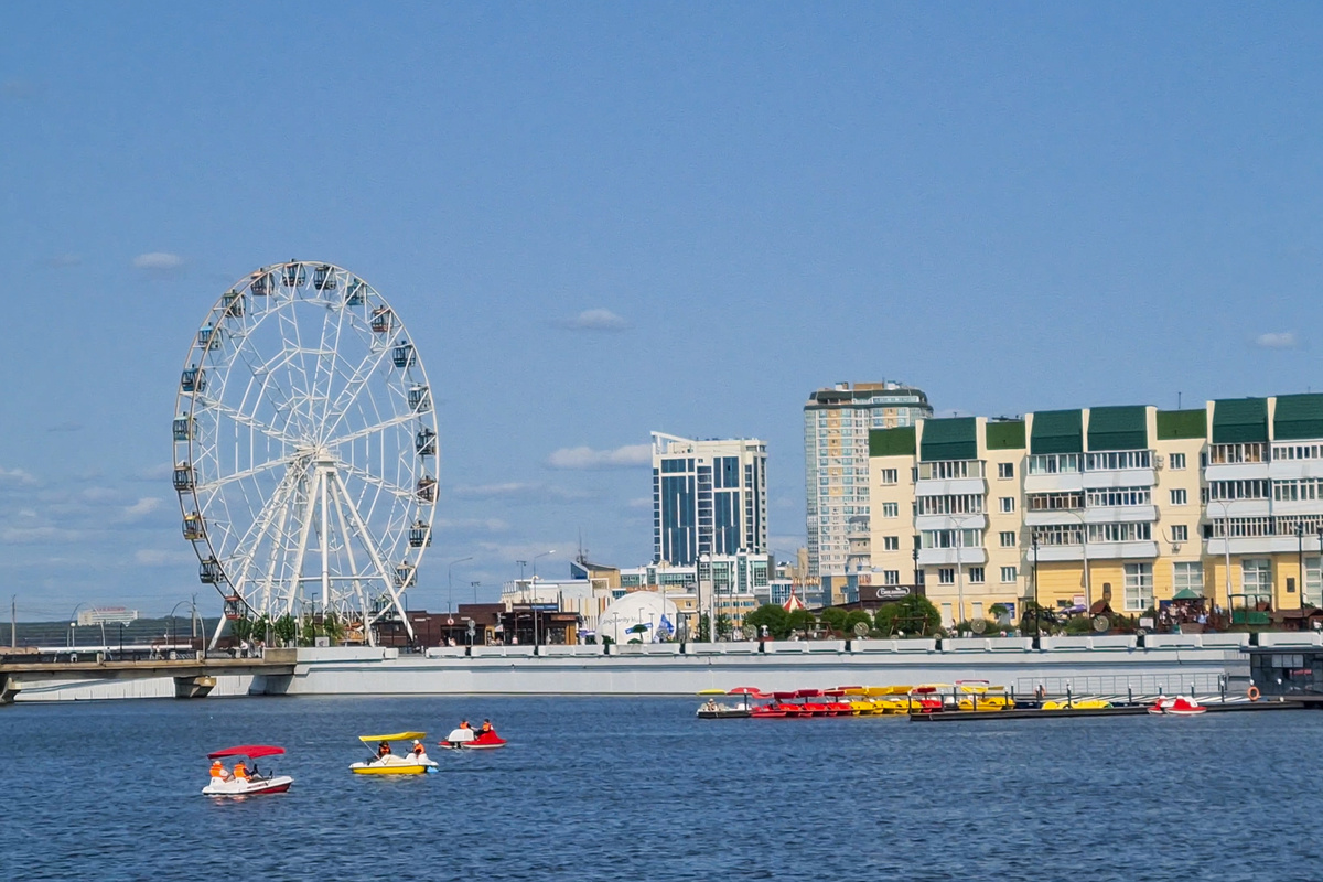 Мы отдыхали в Йошкар-Оле (статья тут) и решили на один день съездить в Чебоксары. Это было одновременно и хорошим решением, и нет. Позже объясню почему. Я купила билеты на маршрутку онлайн через Яндекс, там же есть точное расписание и цены. Дорога занимает примерно 1,5 часа. Но если будут пробки, то дольше. И это нужно учитывать. В день, когда ехали мы, был ремонт дороги, и её перекрывали то в одну сторону движения, то в другую. У нас было 8 часов, чтобы успеть всё посмотреть и пару раз перекусить. Было решено сразу идти на набережную и обойти её всю по кругу. Идём с юга реки Чебоксарки на север, по часовой стрелке. Сначала пройдём Амфитеатр, а потом будет первая Смотровая площадка. Проходим под мостом и видим колесо обозрения и катамараны. В Чебоксарах, на высоком берегу залива, возвышается символ города — монумент «Мать-покровительница». Скульптура в образе женщины-чувашки в национальном костюме встречает гостей раскинутыми руками, словно обнимая и защищая весь народ. Её жест — это
