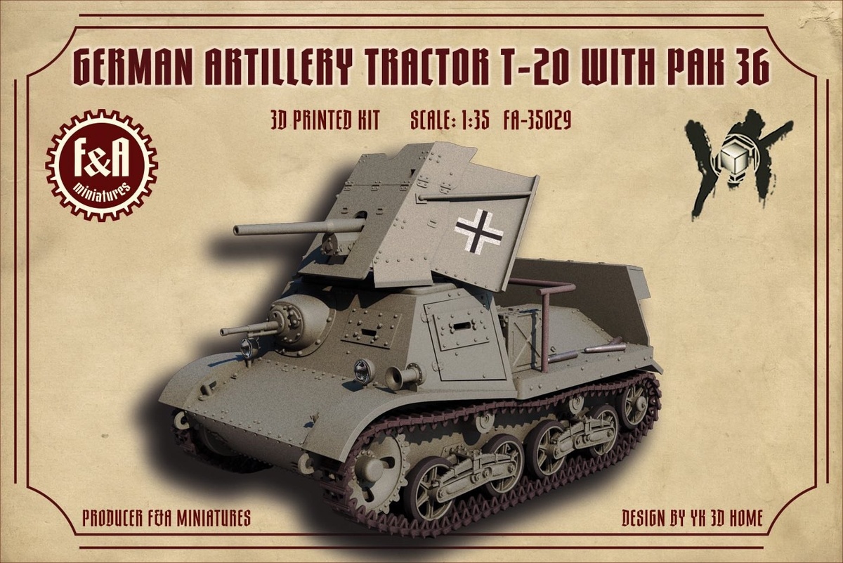 F&A Miniatures из Польши показала детали своей выращенной на 3D-принтере модели трофейного варианта советского артиллерийского тягача Т-20 "Комсомолец" с немецкой пушкой Pak 35/36 в масштабе 1/35.