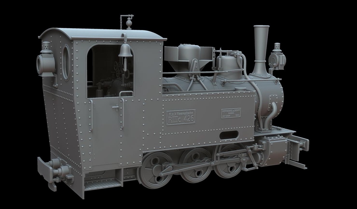 Румынская D-Models показала рендеры своей будущей модели узкоколейного паровоза Henschel RIIIc, которая будет выпущена на 3D-принтере в масштабе 1/35.