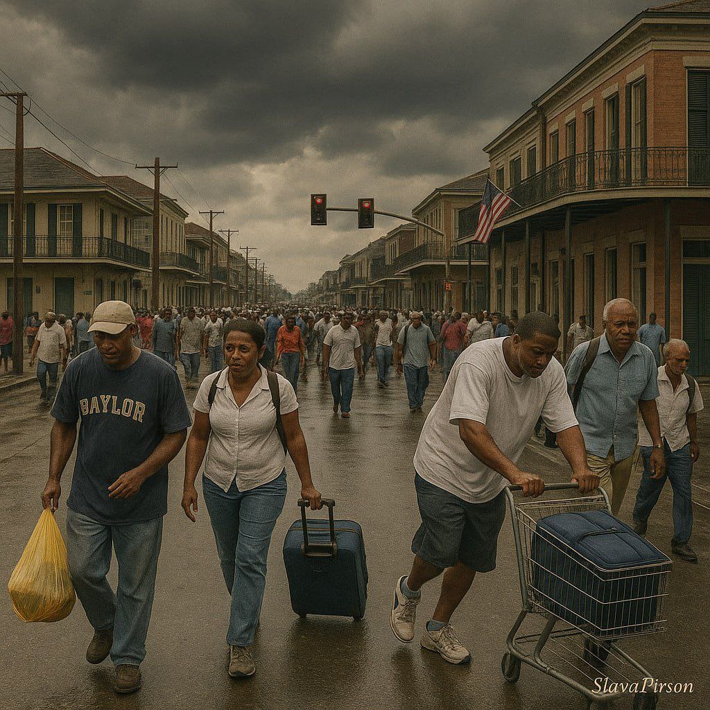 Новый Орлеан, 28 августа 2005 года. Объявлена обязательная эвакуация из-за приближения «Катрины» — тысячи не успевают уехать, что приводит к гуманитарной катастрофе и пересборке системы реагирования на ЧС в США.
