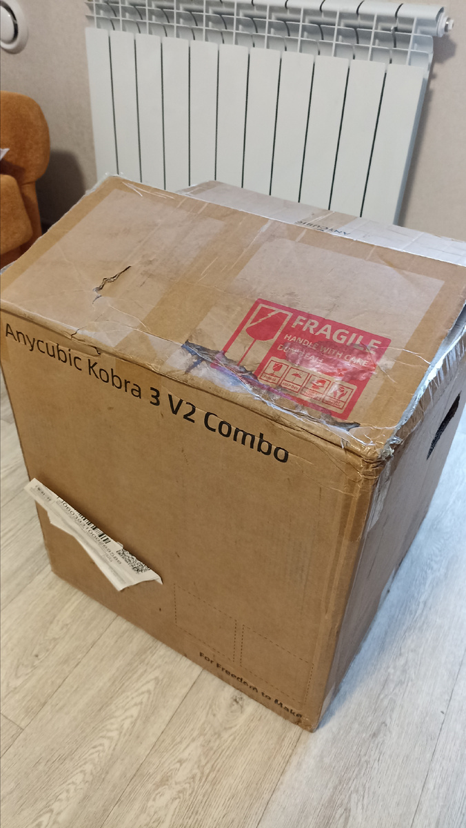 Всем привет! Наконец-то случилось то, о чем я так долго мечтал — на моем столе стоит мой собственный 3D-принтер! Это Anycubic Kobra 3V2 Combo, и сегодня я хочу поделиться с вами первой главой моего небольшого приключения: от заказа и опасений при распаковке до первых, не всегда идеальных, отпечатков. Заказывал я принтер на AliExpress. Выбор пал на эту модель из-за хорошего соотношения цены и качества, а также наличия в комбо-версии камеры Ace Pro для сушки и автоматической смены филамента при многоцветной печати, а также камеры для удалённой работы с принтером. Но главным квестом стала не покупка, а доставка. Транспортной службой был выбран Cainiao. Честно признаюсь, я начитался в интернете таких ужасов, что уже мысленно прощался с деньгами и готовился к месячным битвам с поддержкой. Историями о долгом ожидании, помятых коробках и потерянных посылках пестрили форумы. Мои ожидания были, мягко говоря, пессимистичными. Большее опасение вызвало то, что посылка была довольно габаритная, чег