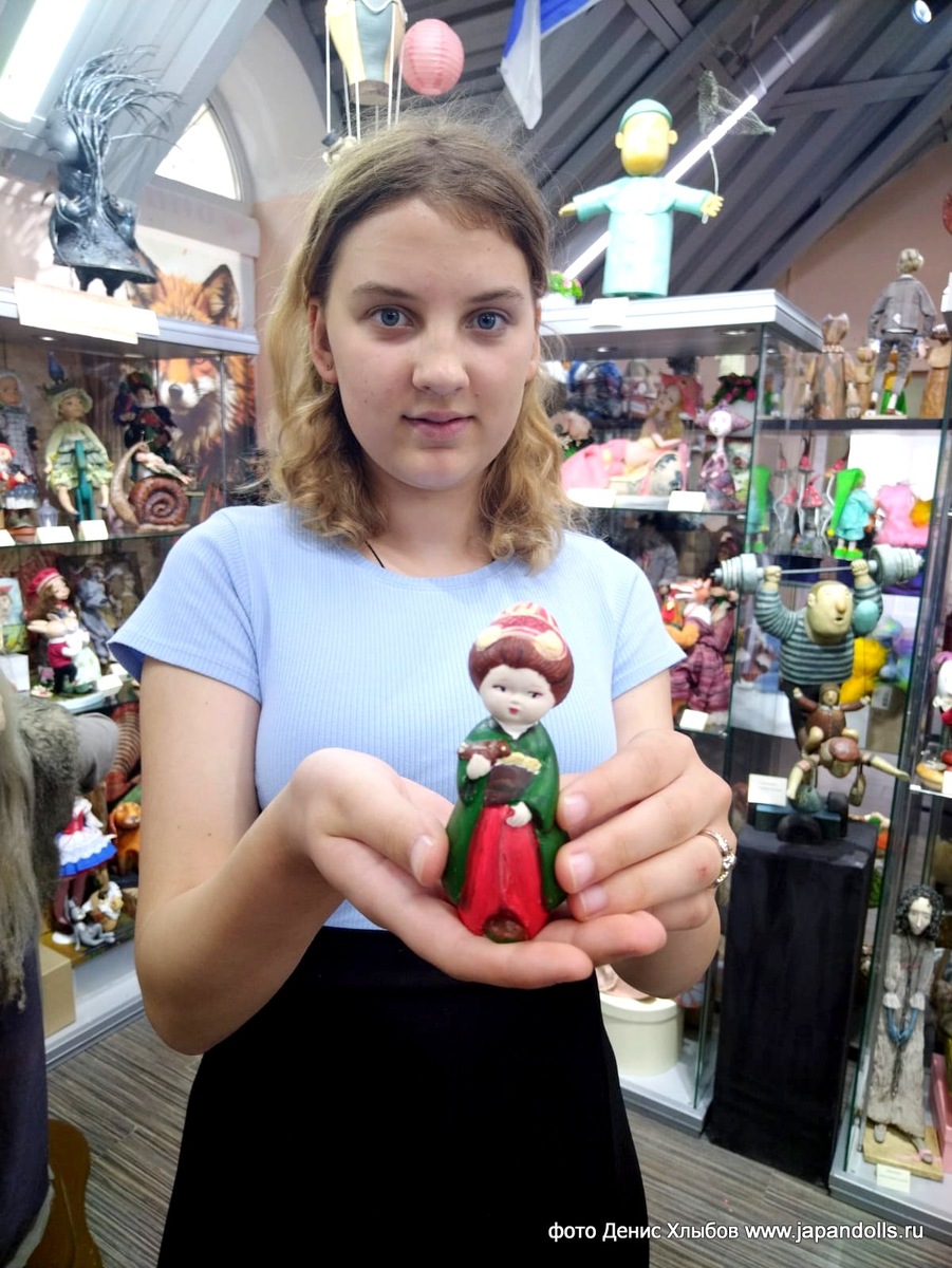 "Девочка с птицей" от нашей гостьи из Риги на мастер-классе по росписи фарфоровой фигурки в стиле Хаката-нингё. Приглашаем посетить наш Музей Кукол МОАК «Кукольный переулок» в Кремле в Измайлово. Коллекция Музея состоит из нескольких экспозиций – авторских кукол, японских традиционных и авторские кукол и истории кукол и игрушек, русских народных кукол и игрушек, антикварных кукол и реплик, портретных кукол. У нас можно пройти литературный квест для детей и взрослых – проверить насколько хорошо вы помните сказки и легенды, как выглядят их герои. Можно сфотографироваться на память в разных японских образах, используя маски, сумочки, веера, зонтики и различное вооружение (шлемы, катаны, копья и пр.). На мастер-классах можно расписать больше 50 различных кукол и фигурок из фарфора и дерева, на японскую тематику и других разных сказочных существ. Все можно фотографировать и снимать на видео. Музей открыт как для индивидуальных посетителей, так и для экскурсионных групп. Посмотреть подробные
