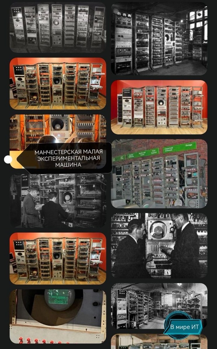 МАНЧЕСТЕРСКАЯ МАЛАЯ ЭКСПЕРИМЕНТАЛЬНАЯ МАШИНА | 💾⚙️ 21 июня 1948 года в Манчестерском университете запустили Манчестерскую малую экспериментальную машину (Manchester Baby), первый в мире электронный компьютер, построенный по принципу хранения данных и программ в одной памяти. Создали её Фредерик Уильямс, Том Килберн и Джефф Тутилл, используя инновационную память на трубках Вильямса. Первая программа факторизации чисел выполнялась за 52 минуты, совершая около 3,5 миллиона операций. Машина занимала целую комнату, весила 27 тонн и работала на 17 468 электронных лампах. Тактовая частота составляла 100 кГц; память могла хранить 20 числовых слов. Проект финансировался британским Министерством снабжения и имел важное значение для военных - автоматизация расчётов для ядерной программы. После успешного старта в 1948 году компания Ferranti создала коммерческую версию - Manchester Mark I. Компьютер положил начало эпохе программируемых ЭВМ и современного ПО. #вмиреит #история