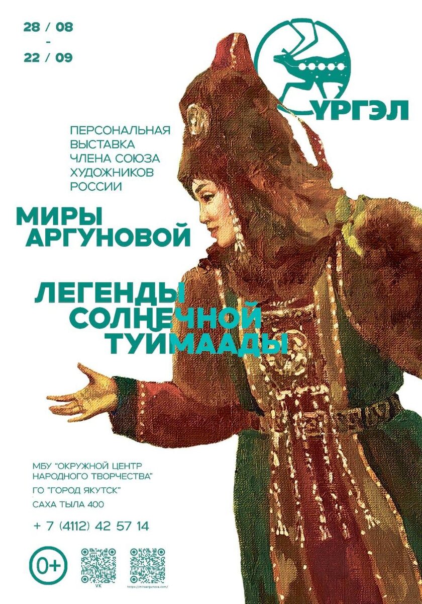 🤩В арт-галерее «Ургэл» откроется выставка выпускницы-наставницы АГИКИ Миры Аргуновой 🤩На выставке впервые будет представлена вниманию зрителей серия картин по легендам долины Туймаада, созданная в 2025 году в классической технике академической живописи на основе этнографических и филологических научных материалов, предоставленных общественным движением по сохранению якутского языка «Саха тыла 400». 🤩Картины Миры Аргуновой экспонировались на 121 выставке в России, Китае, Монголии, Турции, США и Великобритании, включая 40 персональных выставок. В настоящее время произведения живописца находятся в ведущих музеях, галереях, а также в частных коллекциях в России, Турции, Монголии, Голландии, Южной Корее, Китае и Великобритании. Сейчас выпускница АГИКИ руководит художественным блоком социокультурного проекта «СУОЛ (ПУТЬ)», разработанного резидентами креативного кластера «Квартал труда» в сотрудничестве с творческими сообществами Якутска при поддержке ВЭБ.РФ. 📌Открытие выставки состоит