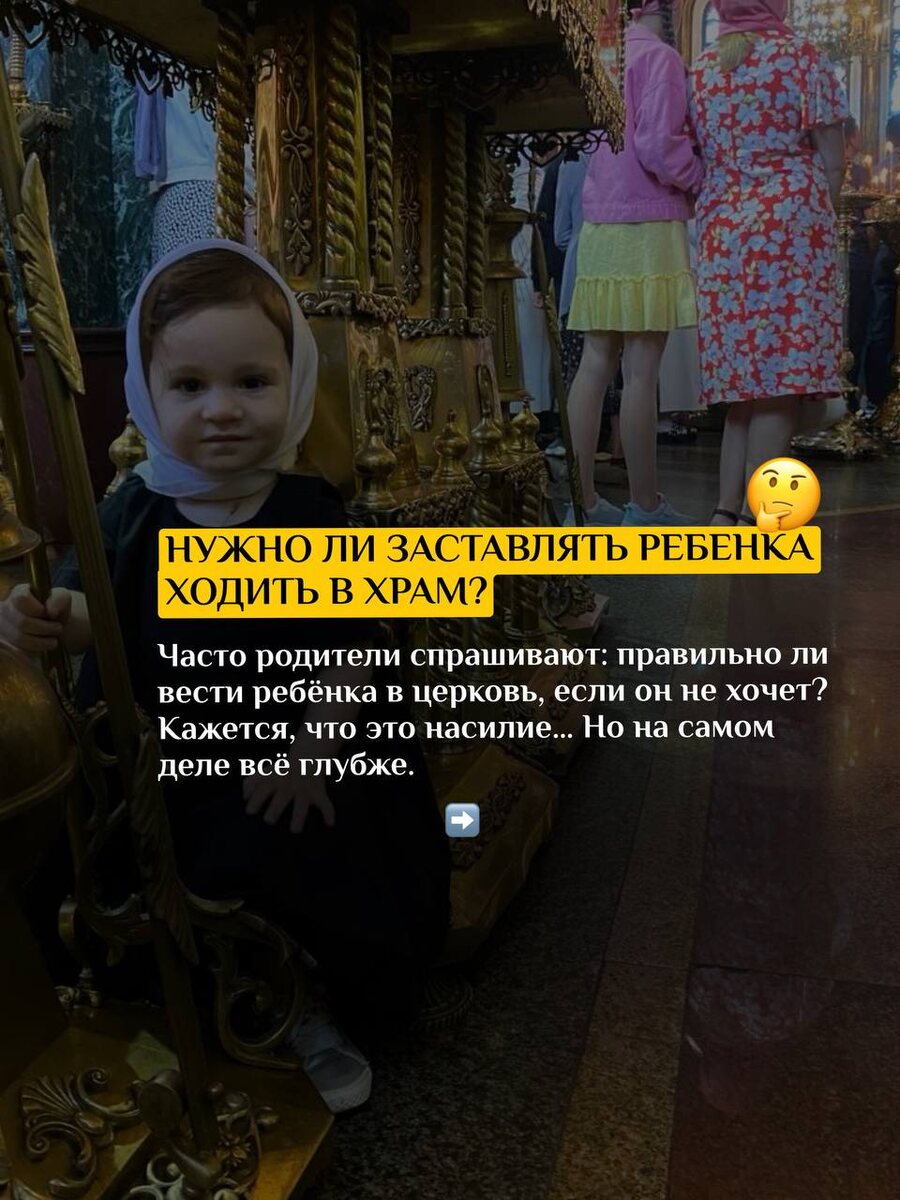 ⬇️Многие родители спрашивают: «Нужно ли вести ребёнка в храм, если он не хочет? Не будет ли это насилием?» По мнению отца Сергия Кульпинова: до 12 лет ребёнок ещё не способен сам делать выбор. Он — отражение своих родителей. И именно в это время ему особенно нужна духовная защита. Причастие — это то, что очищает сердце ребёнка от всего лишнего. То, что родители исправить не могут, делает Христос. Мир слишком жестокий, и только Бог способен сохранить детей в чистоте и радости. 👉Поэтому важно: ✔️до 12 лет — каждое воскресенье причащать ребёнка, не спрашивая «хочешь или нет»; ✔️после 12 лет — дать ему возможность самому выбирать путь веры. ❗️Но главное — всё начинается с нас. Если родители живут с Богом, молятся, каются, делают добро — то и дети вырастают такими же. ❤️ Пусть наши семьи держатся за Христа — только так мы сможем передать детям настоящую силу и радость. 📌 Отправь тому, кому это важно узнать 🙏🏻