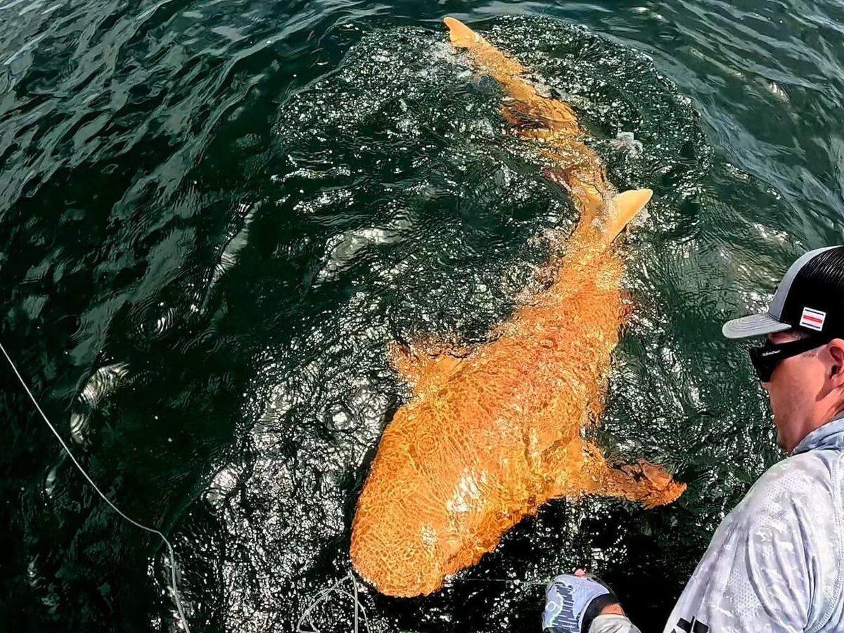 Мир полон интересных открытий У берегов Коста-Рики поймали «золотую рыбку» размером с акулу (точнее — это и была акула). Редчайшая мутация — ксантизм — окрасила её кожу в золотистый оттенок, а сочетание с альбинизмом сделало взгляд совсем фантастическим. Такой случай учёные зафиксировали впервые в истории. Акула оказалась здорова и благополучно вернулась в океан. Вот бы и нам такую золотую рыбку встретить… только вот 3-х желаний маловато. Ведь у нас явно больше?