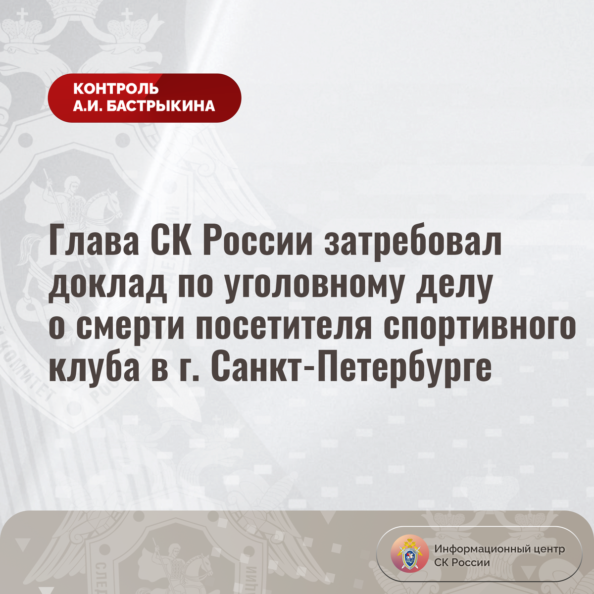Глава СК России затребовал доклад по уголовному делу о смерти посетителя спортивного клуба в г. Санкт-Петербурге