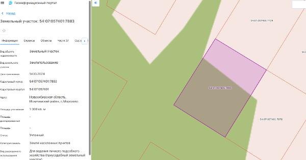 Название: Земельный участок с кадастровым номером 54:07:057401:7883 площадь 1000 кв