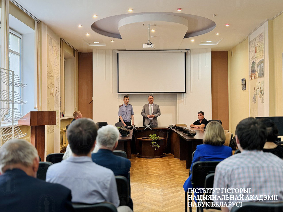 🔹28 июля 2025 года в Институте истории НАН Беларуси в рамках Единого дня безопасности дорожного движения состоялась встреча с заместителем начальника отдела технических средств и систем ГАИ ГУВД Мингориспокома Жидкевичем Евгением Викторовичем.