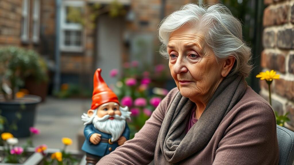 Однажды вечером, уже после всех споров, она вышла к клумбе с маленькой кисточкой и баночкой медицинского пластилина. «Дочка подарила для рукоделия», — подумалось ей почему-то. Мягко размяла массу в пальцах и аккуратно налепила на нос гнома новый кусочек — неровно вышло, но похоже на родинку или смешную картошку.