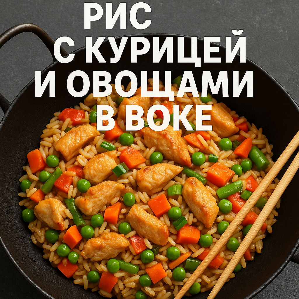 Рис с курицей и овощами в воке — яркое, ароматное и питательное блюдо, которое готовится всего за 45 минут и отлично подойдёт как для семейного ужина, так и для дружеской встречи. ✏️ Ингредиенты Из расчёта на 3–4 порции: ⦁ 200 г длиннозерного риса (жасмин или басмати) ⦁ 400 мл воды ⦁ 400 г куриного филе ⦁ 150 г болгарского перца ⦁ 100 г моркови ⦁ 100 г репчатого лука ⦁ 3 ст. л. растительного масла ⦁ 2 ст. л. соевого соуса ⦁ Зелень (зелёный лук, кинза) для подачи ⦁ Соль, чёрный перец — по вкусу ✏️ Время приготовления и калорийность Время: около 45 минут (20 мин на рис и 25 мин на обжарку) Калорийность: ~134,9 ккал на 100 г готового блюда ✏️ Пошаговый рецепт 1. Подготовьте рис: промойте его в холодной воде до прозрачности, замочите на 10 минут и снова промойте, чтобы зерна не слипались. 2. Отварите рис: в глубокой сковороде или сотейнике разогрейте 1 ст. л. масла, слегка обжарьте рис, влейте 400 мл воды, доведите до кипения, накройте крышкой и тушите 20 минут до полного впитывания жидкос