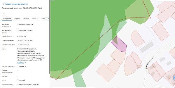 Название: Земельный участок, с кадастровым номером 74:10:0604002:509, площадью 1495 кв.м., категория земель: земли населенных пунктов