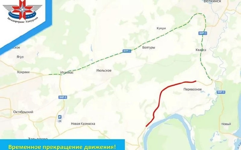🚧Участок дороги «Сарапул – Воткинск» перекроют в Удмуртии 27 августа Ограничения связаны с проведением соревнований по велоспорту, сообщает пресс-служба Миндортранса Удмуртии. Движение транспорта перекроют с 10:00 до 16:00 27 августа на участке дороги от моста за деревней Докша до поворота на село Перевозное. В качестве объездного пути в министерстве предлагают дороги «Ижевск – Воткинск» и «Воткинск – Чайковский». Фото: Миндортранс Удмуртии Подписывайся на Ижевский бизON #Удмуртия