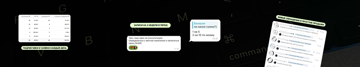 Хочу поделиться супер результатом с тату-мастером Дарьей из г. Саратов, когда окупили и рекламный бюджет + мою работу при затратах на рекламу 500 руб. в день! Ранее рекламу Дарья самостоятельно запускала, но заявок и клиентов не было… Этап 1. Создали старый рекламный кабинет. ДА, ДА пока что можно еще работать в старом кабинете, но чтобы его создать нужно написать в тех. поддержку. + определяемся со стратегией рекламы. В тату обязательно крутим рекламу отдельно на девушек и отдельно на парней! Этап 2. Подготовили группу Удобная навигация, обязательно добавляем актуальные фото работ + пост знакомство с мастером. Это позволяет увеличить кол-во обращений, а значит и продаж! Этап 3. Запуск рекламы Первый запуск и заявки полетели за 5 дней 10 заявок по 200 руб и уже 3 записи! В итоге за 10 дней работы с 13 по 23 февраля - 24 заявки по 187 руб.! Клиентов на тот момент закрыли на сеансы: 6 записей на 53 000 руб. !!! В какой-то момент стало меньше продаж на сеансы, я полезла смотреть переписки