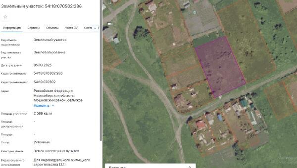 Название: земельный участок с кадастровым номером 54:18:070502:286, местоположение: Российская Федерация, Новосибирская область, Мошковский