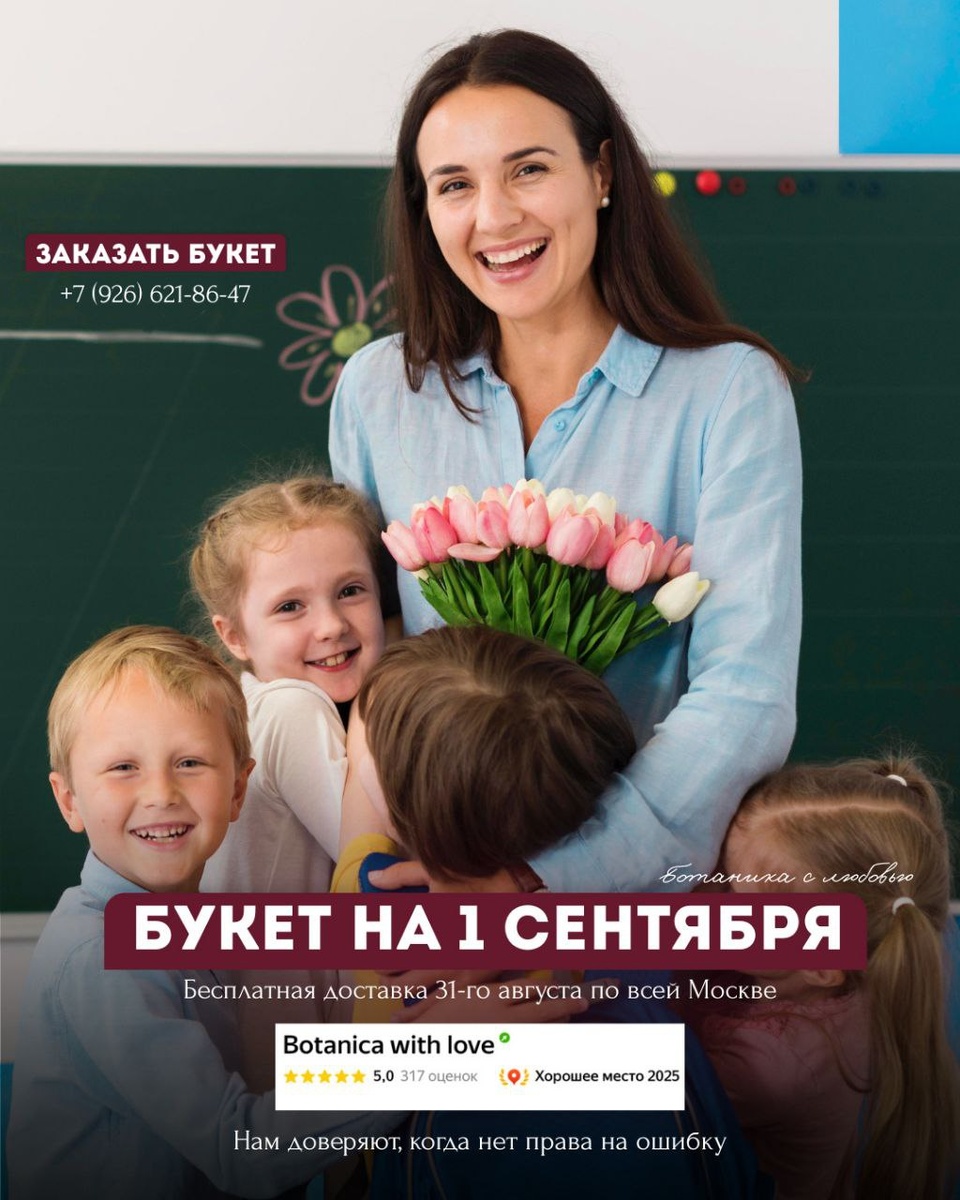 Готовы к 1 сентября? Мы — да! 😉 Закажите букет до 30 августа включительно и получите: 🔥Бесплатную доставку 31-го августа • Милую открытку в подарок • Розыгрыш 15 000₽ на цветы, при покупке букета на 1 сентября! ⭐️5.0 на Яндекс.Картах, нас выбирают 1000 клиентов по всей Москве, у нас только свежие цветы - даем гарантию Заказать букет 👇 Наш сайт: https://botanicawithlove.ru