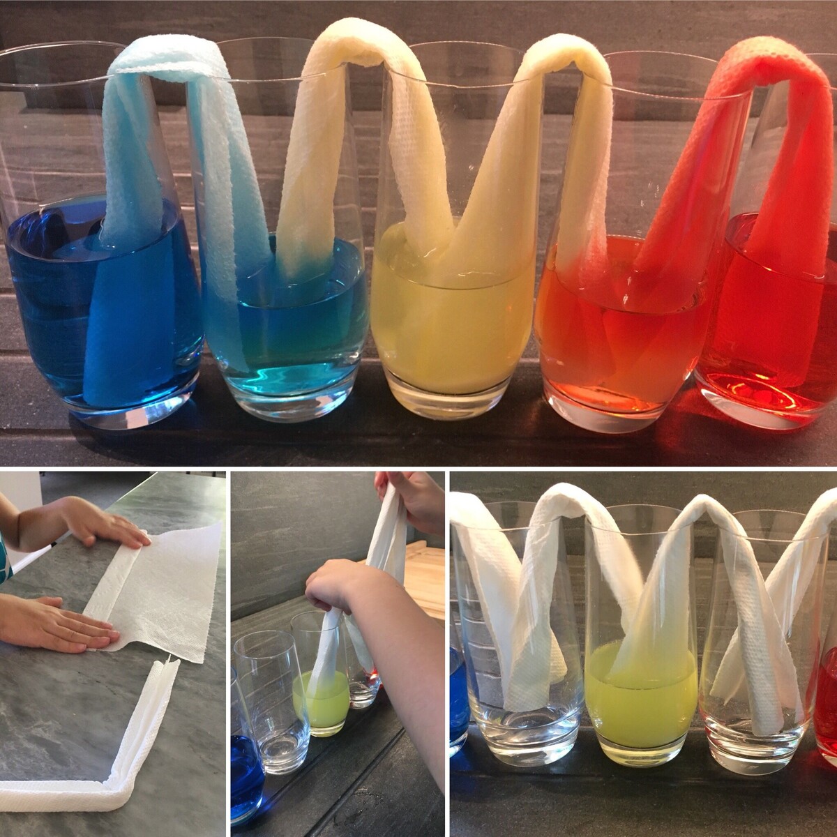Что, если с помощью обычных бумажных салфеток и силы сцепления между молекулами мы сможем заставить разноцветную воду подниматься против силы тяжести и создадим радужный мост между стаканами? Что нам понадобится?