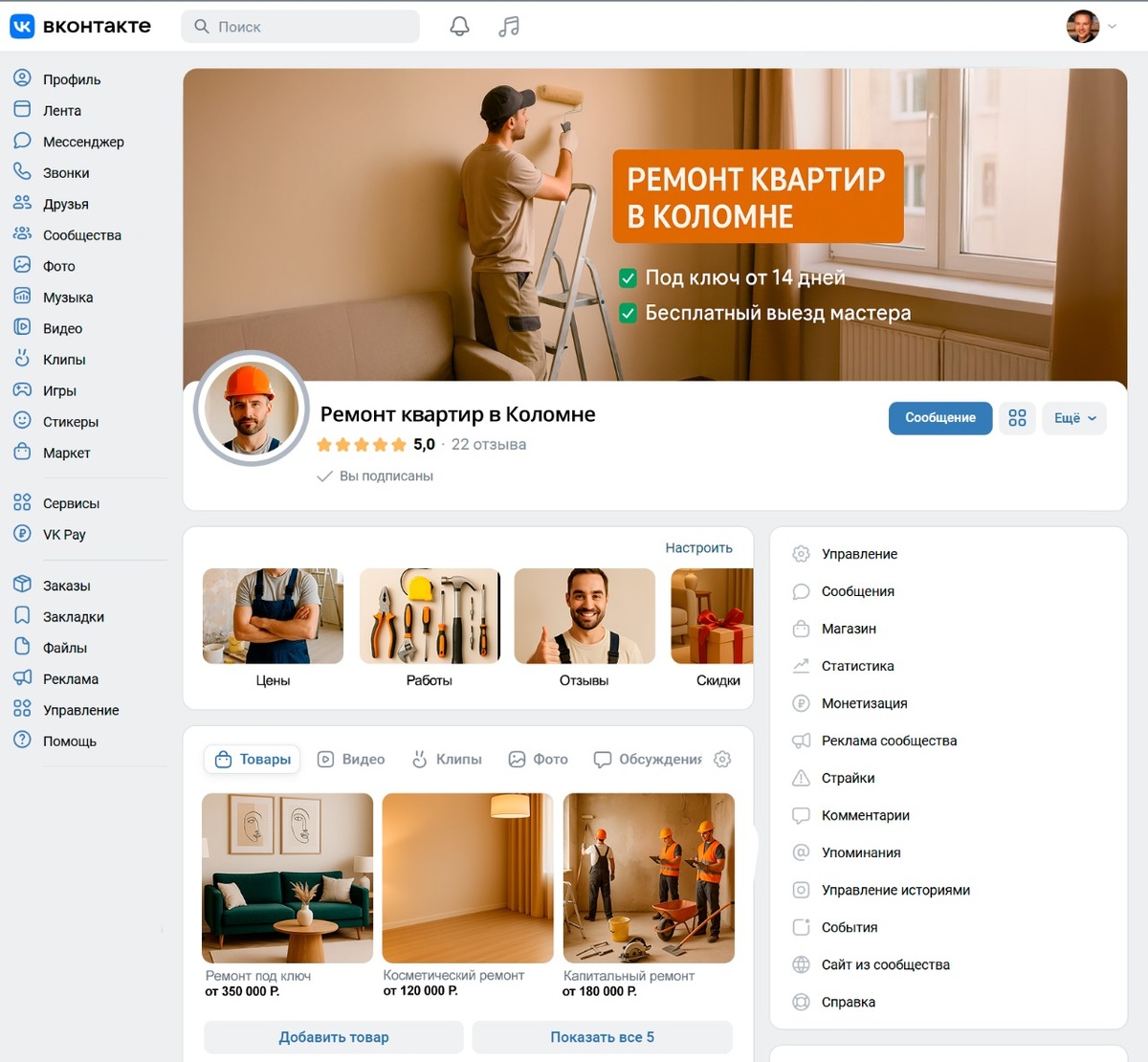 Как продвигать ремонт через ВК без больших бюджетов: мой личный опыт в Коломне