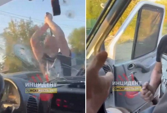 ЧП произошло накануне. По словам очевидцев, у женщины за рулем «Лады» произошел дорожный конфликт с маршрутчиком, в итоге она перегородила своим авто ему путь. Защищать свою женщину из «Лады» вышел муж. Он набросился на микроавтобус и молотком разбил лобовое стекло, выкрикивая при этом угрозы. Все закончилось дракой.