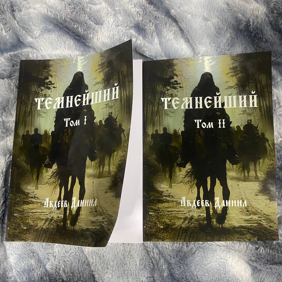Очень хочу рассказать о книгах этого автора. Я не знала о его существовании. Но мой взрослый сын очень любит читать книги. Так же как и я. Читает он много, когда находит для этого времени. Сейчас — Пикуля «Честь имею» и вот Даниила Авдеева «Темнейший». И именно сын о «Темнейшем» мне и рассказал прежде, чем стала читать его я. Сначала я от Андрюшевича слышала : — Ма, человек пишет феноменально. Так ещё не писал никто. Темнотос — это уникальная вещь. И при том он уже больше по содержанию и объёму, чем «Война и Мир» Толстова. Настолько интересно, что я жду выхода 2 тома. Спешу заметить, что на фото 2 тома. Но на самом деле в электронном виде это один том. Просто при издании автору пришлось разделить на два печатных тома. В одну печатную книгу «Темнейший» первый том просто не влез бы. И сейчас он по итогу пишет только 2 том. Вот такая небольшая путаница. Продолжаю свой рассказ😊. Тогда, когда сын мне поведал об этом авторе , печатных изданий автора не было. Был и есть канал в телеге, г