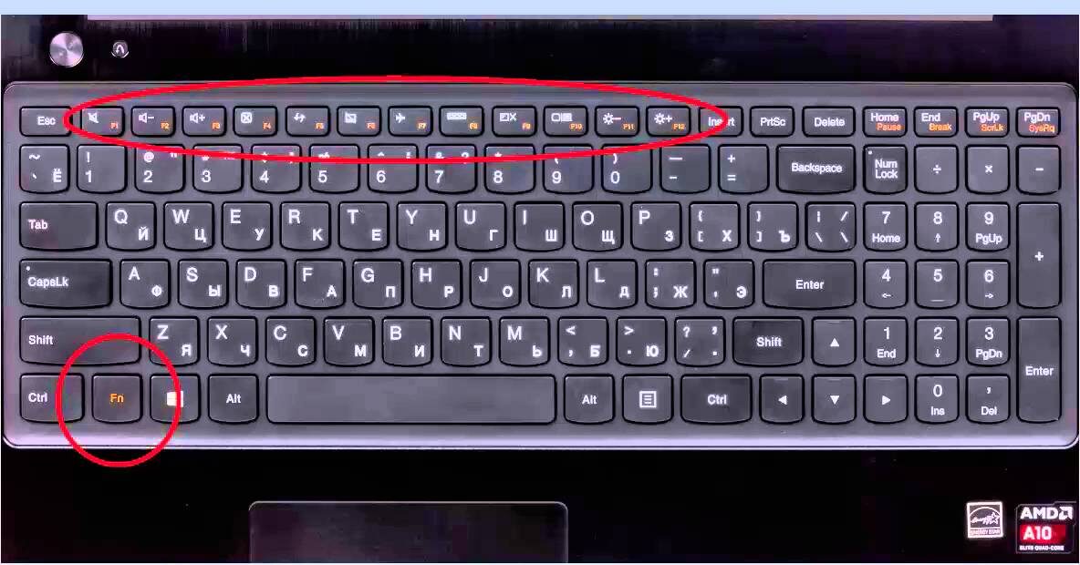 - Подсветка экрана выключена. Случайно можно нажать комбинацию клавиш, отключающую подсветку (например, Fn + F2, Fn + F5 или другая клавиша с иконкой солнца/экрана). Попробуйте осветить экран фонариком под углом. Если увидите тусклое изображение — проблема именно в подсветке.