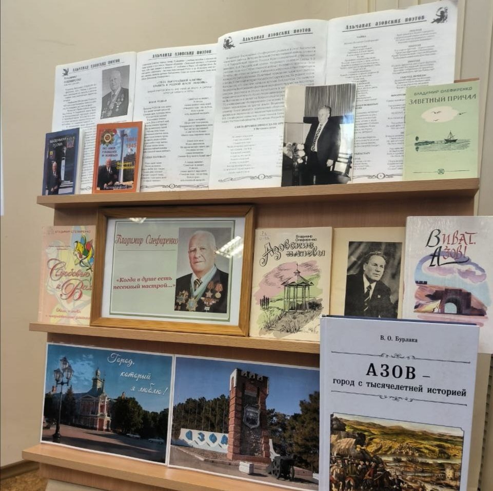Азов отметил столетний юбилей почетного гражданина — Владимира Олефиренко В Центральной библиотеке Азова прошел памятный вечер, посвященный 100-летию со дня рождения известного азовского поэта Владимира Олефиренко, участника Великой Отечественной войны. Вечером 23 августа собрались родные и друзья, ценители творчества ветерана. Владимир Олефиренко стал автором многих поэтических произведений, среди которых особо выделяются тексты гимнов Азова, Азовского района и даже гимн российского Военно-морского флота. Его творчество оставило значительный след в культурном наследии родного края. Последние годы своей жизни поэт активно занимался воспитательной работой с молодежью, часто посещал учебные заведения, проводил беседы и патриотические мероприятия. Благодаря этому многие поколения жителей Азова узнали о значении исторических традиций Донской земли. Кроме того, Владимир Олефиренко являлся активным участником ветеранских мероприятий. В знак признания заслуг поэта в 2005 году он удостои