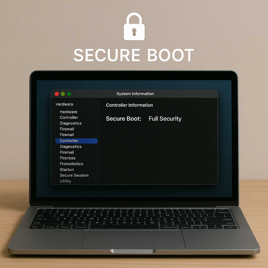 🖥 System Information → Controller — здесь отображается статус Secure Boot: Full Security или Reduced Security. Если стоит «сниженный уровень», значит система допускает работу неподписанных kext-ов (например, для старого софта). 🛠 Startup Security Utility в режиме восстановления — именно там можно включить/выключить Secure Boot и проверить FileVault.
