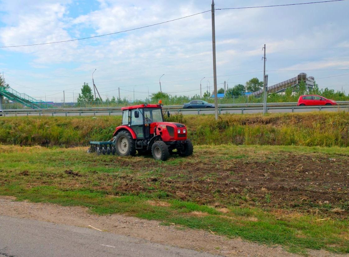 Сотрудники учреждения занимаются обработкой дискатором придорожных полос по ул.Коммунистической.