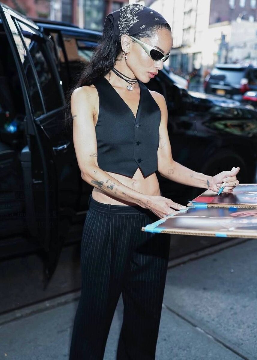 Думаю, что у многих модниц в гардеробе где-то спрятался платок с принтом турецкого огурца Вот и у Зои Кравиц он был и она ему не дает лежать без дела, а сочетает в расслабленных образах с широкими брюками на бедрах и укороченным обтягивающим верхом Осенью хорошо будет сочетаться с кожаной и замшевой верхней одеждой