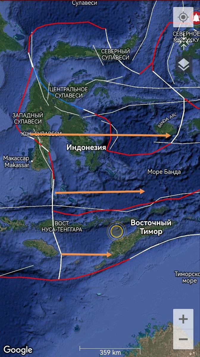 Индонезия в районе моря Саву, Банда и расположения вулкана 🌋 Левотоби. Есть вероятность землетрясения М6+ или мощного извержения в течение 7 дней. ====== Indonesia in the area of the Savu Sea, Banda Sea and the location of the Lewotobi volcano. There is a possibility of an M6+ earthquake or a powerful eruption within 7 days.