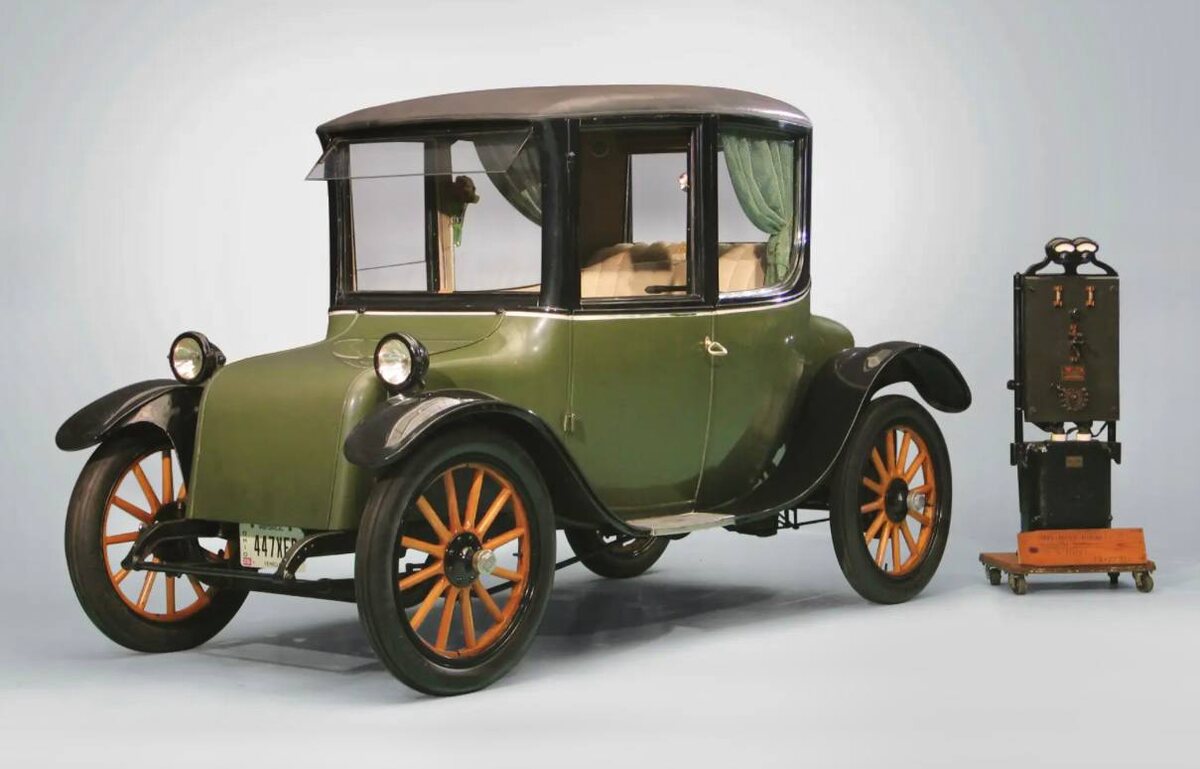 Поездка от первого лица на электрокаре Milburn Model 27L Brougham начала 20-го века. В отличие от бензиновых автомобилей, у электрокаров вместо руля был рычаг. Второй рычаг отвечал за управление скоростью. Кстати, сегодня такой электрокар можно купить на аукционе, в коллекционном состоянии (на ходу) по стартовой цене современной «электрички» среднего класса — от $40-50 тыс.