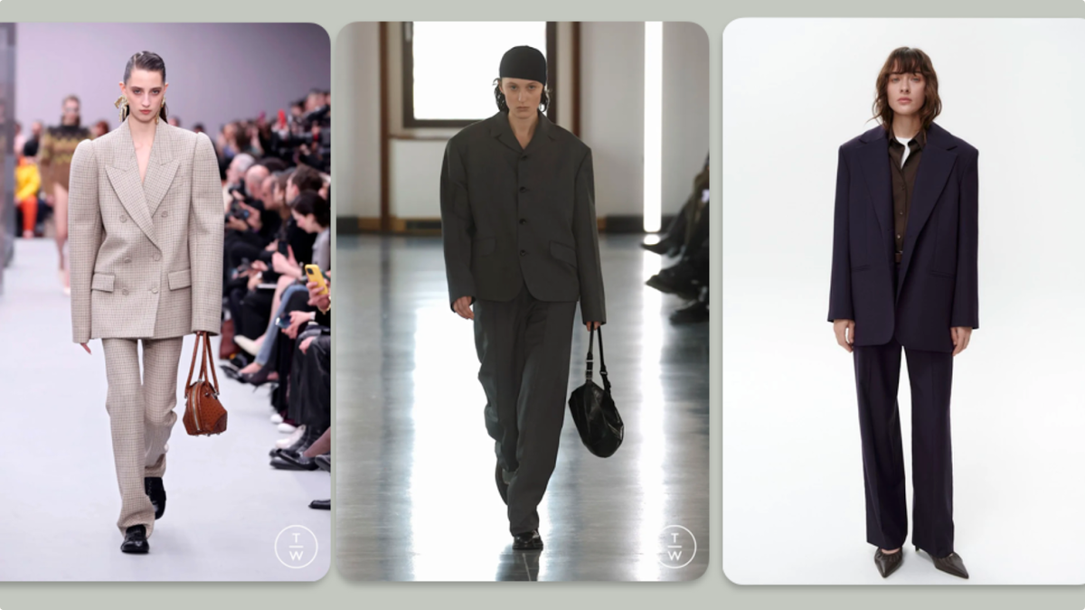 В этой статье разберем актуальные тренды, фасоны, советы по выбору костюма под фигуру и подскажем, где купить по-настоящему хорошо сидящий комплект. Женский брючный костюм можно носить в офис, на встречу, в ресторан и даже на пешую прогулку. Секрет в том, что он легко меняется под настроение: стоит заменить обувь или аксессуары — и строгий look превращается в расслабленный. Сегодня костюм перестал быть исключительно офисным — это часть современной базы. Смотрим, какие решения костюмной группы встречаются на подиуме. 🔗 Смотреть костюм справа, цвета инжира: пиджак + брюки 🔗 Смотреть костюмы справа, коричневого и бежевого цвета: жакет + брюки (коричневые), жакет + брюки (бежевые) 🔗 Смотреть костюм справа, серого цвета: жакет + брюки 🔗 Смотреть костюм справа, темного цвета: жакет + юбка 🔗 Смотреть костюм справа, темно-серого цвета: блуза-жакет + юбка 🔗 Смотреть костюм справа, карамельного цвета: жакет + юбка 🔗 Смотреть костюм справа, карамельного цвета: жакет + юбка 🔗 Смотреть кост