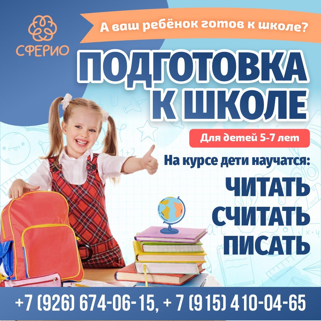 ✨ ☝️ПОДГОТОВКА К ШКОЛЕ ДЕТЕЙ 5-7 ЛЕТ!💥 📚 На нашем курсе подготовки к школе ваш ребенок: ✨ Научится читать, считать и грамотно писать 🧩 Разовьёт логику, внимание и память 🎨 Освоит творческие и мелкомоторные навыки 🏢 Учебный центр "Сферио" 📍 г. Чехов,ул. Полиграфистов, 6 (Вход со двора, подъезд 2, этаж 3) 🔗 Записаться: https://wa.me/+79154100465 Наши соцсети 📲⬇️ ➡️ ВК https://vk.com/sferio_kids ➡️ ТГ https://dzen.ru/id/672e115c65592e5989376c34 ➡️ Продленка https://vk.com/prodlenkachehov ➡️ Школа https://vk.com/sferio_school ⭐Разместить публикацию ⭐Поддержать канал голосом #webСферио #детямЧехов #интересноЧехов ✅ Мероприятия Чехов https://dzen.ru/id/66cc4b48e9ef144699238a51 http://vk.com/chekhov_events http://dzen.ru/chekhov_events
