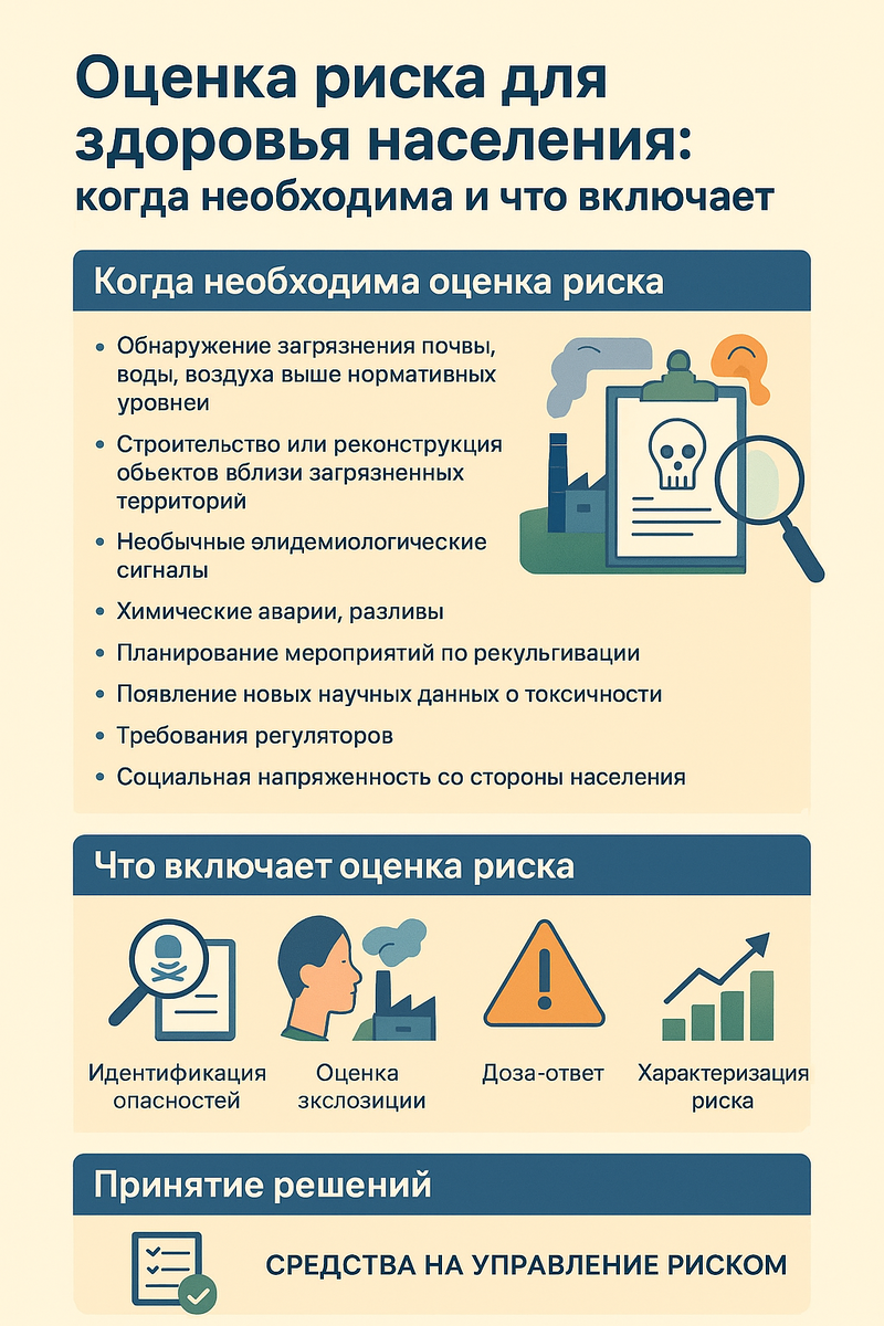 Оценка риска служит мостом между наукой и управлением: она превращает разрозненные измерения концентраций, лабораторные данные и эпидемиологические наблюдения в понятные и управляемые показатели риска. В условиях ограниченных ресурсов именно качественная и честная оценка риска помогает принимать приоритетные решения — где требуются срочные меры, где достаточно мониторинга, а где стоит применить принцип осторожности. Для бизнеса, органов власти и общественности это значит — снижение неопределенности, защита здоровья людей и минимизация экономических и репутационных потерь.