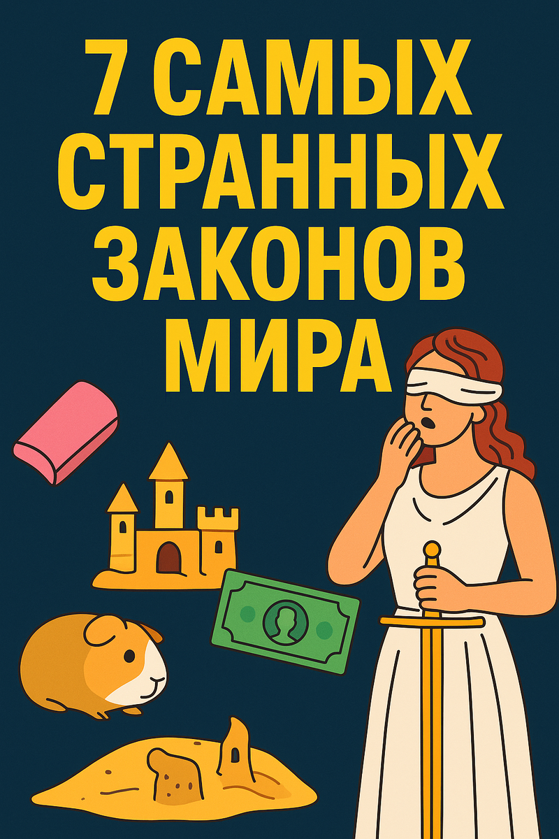 Мир полон странностей, но иногда абсурд доходит до уровня официального законодательства. Да-да, это не анекдоты — многие такие законы реально действуют до сих пор. Вот 7 примеров, от которых вы точно удивитесь 👇 1. В Сингапуре нельзя жевать жвачку С 1992 года в Сингапуре действует строгий запрет на ввоз и продажу жвачки. Причина — жители пачкали улицы, портили общественный транспорт и даже лифты. Нарушителям грозит штраф до 1000 долларов. Представьте: за жвачку можно попасть на деньги больше, чем за мелкое хулиганство в других странах! 2. В Швейцарии нельзя содержать одну морскую свинку Там посчитали, что морские свинки — социальные животные, и держать одну — жестокое обращение. Поэтому по закону вы обязаны покупать минимум двух. Если одна умирает, хозяину нужно срочно «докупить подружку» оставшейся. 3. В Италии запрещено строить замки из песка В городе Эркулеа (Тоскана) нельзя строить замки на пляже. Закон объясняют заботой о безопасности туристов — кто-то может споткну