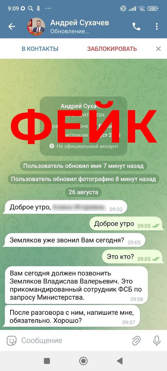 ❗️В Telegram появился фейковый аккаунт главы Свердловского муниципального округа