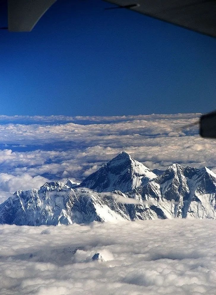 Вершина горы Эверест, вид с борта коммерческого самолета
