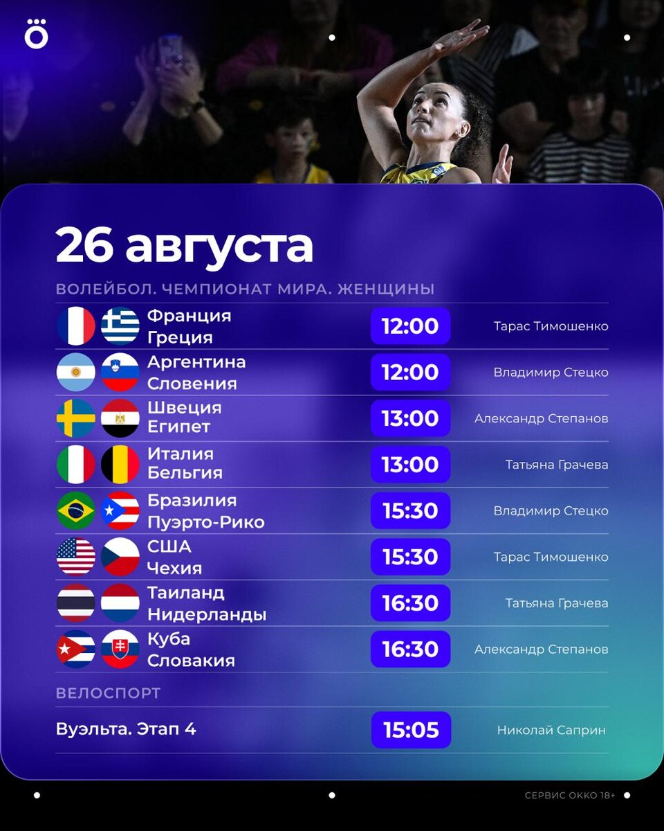 Женский ЧМ по волейболу, Вуэльта, предсезонный турнир имени Пучкова, Кубок России и решающие матчи квалификации ЛЧ 🔥 Смотри весь спорт в Okko: https://okko.tv/s/4ot