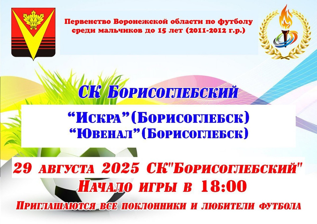 Лето на исходе, а спортивные страсти только разгораются. 29 августа в 18:00 на СК «Борисоглебский» состоится первенство по футболу среди юношеских команд «Искра» и «Ювенал». Приходите поддержать ребят! Это станет для них лучшим стимулом!