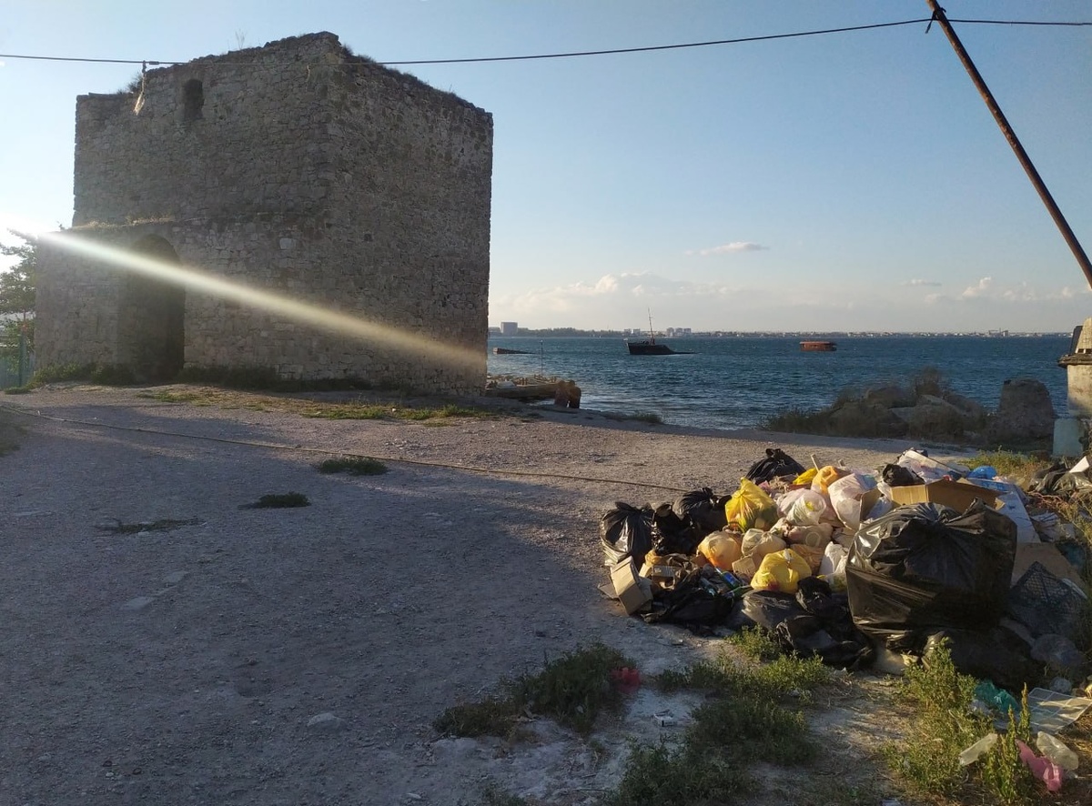 Вечернего солнца перст указующий едва касается вонючей кучи, что росла здесь с мая месяца. Тем, кто живёт рядом, впадло донести пакет до мусорных баков, проще сложить за забором. То, что этот «зазабор» – дорога к памятнику архитектуры, неважно. Башня? А что башня. Она тут всегда стояла. Недавно я привела группу туристов к Доковой показала на источник минеральной воды. Они посмотрели на мусорную кучу и спросили: «А мы точно здесь никакую заразу не подхватим?» Из воспоминаний И.М.Саркизова-Серазини о Феодосии XIX века: «Ночью на пляж тайком свозили мусор из ближерасположенных домов. Все эти "дары" суши и моря разлагались под жарким солнцем, отравляли воздух вонью, пока разбушевавшимися волнами не уносились обратно в море. Спокойные феодосийцы, уверенные, что так и должно быть, старательно обходили заражённые места, благо берег и пляж обширны, располагались на таком расстоянии, куда ветер не доносил неприятной вони....» Феодосийский срачизм – штука наследственная.