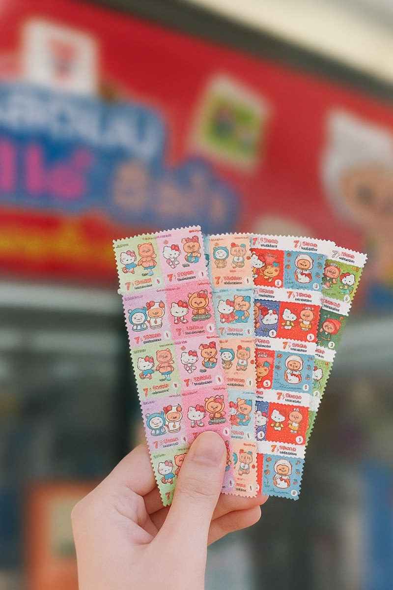 Если вы не фанат Hello Kitty и просто хотите сэкономить, марки можно использовать как деньги при следующей покупке. Каждая марка — это скидка в 1 бат (а некоторые — 3 бата!). Просто отдаёте их кассиру, и он сразу вычитает сумму из вашего чека. Только не забудьте, что на алкоголь и сигареты это не работает.