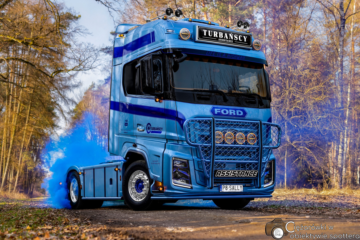 Компания Turbanski, являвшаяся не только дилером, но и авторизованным сервисным центром грузовиков Ford, тогда решила приобрести этот автомобиль, чтобы совместить ремонт кузова с обширными модификациями. Это должно было включать новую синюю краску, целый ряд дополнений и модификацию интерьера. Главным вдохновителем работы снова стал Доминик Пясный, каждый день занимающий должность менеджера по продажам в рамках салона и обслуживания, а целевая работа транспортного средства снова должна была заключаться в транспортировке тракторов в международной помощи, в тандеме со специализированным полуприцепом. Одним из самых интересных элементов дизайна была установка полного переднего трубопровода в уже культовой форме с алюминиевым основанием, сеткой и четырьмя круглыми фарами. Проблема, однако, в том, что это дополнение мы все еще не купим в версии для F-Max, ведь Форды остаются большой редкостью в Европейском тюнинге. Таким образом, Доминик приобрел крышку известного голландского бренда MRK Bu