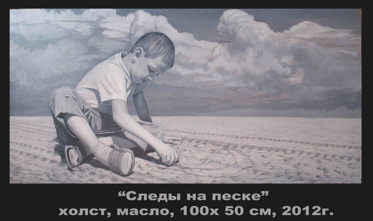 "Следы на песке", холст, масло,100х50см, 2012 г.