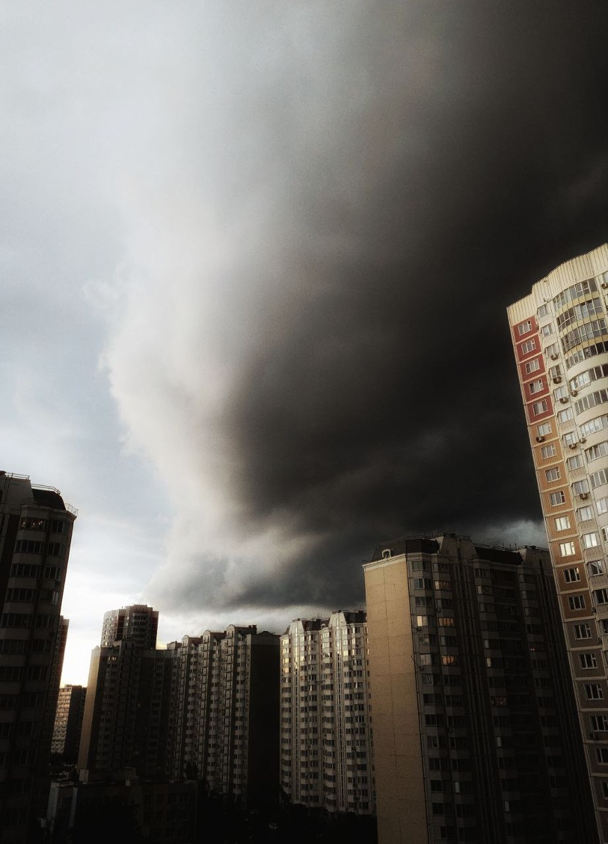 По небу неслись пухлые, белые облака, лениво переплывая из одного конца горизонта в другой. Жаркий августовский день клонился к вечеру, уступая место прохладе. Город, изнывающий от духоты, наслаждался тишиной. Но неожиданно с востока появилась тёмная, небольшая точка. Она росла, быстро набирая вес и ширину. Через мгновение она уже напоминала огромного, взлохмаченного зверя, который вот-вот поглотит солнце. Зрелище было пугающим и завораживающим одновременно.