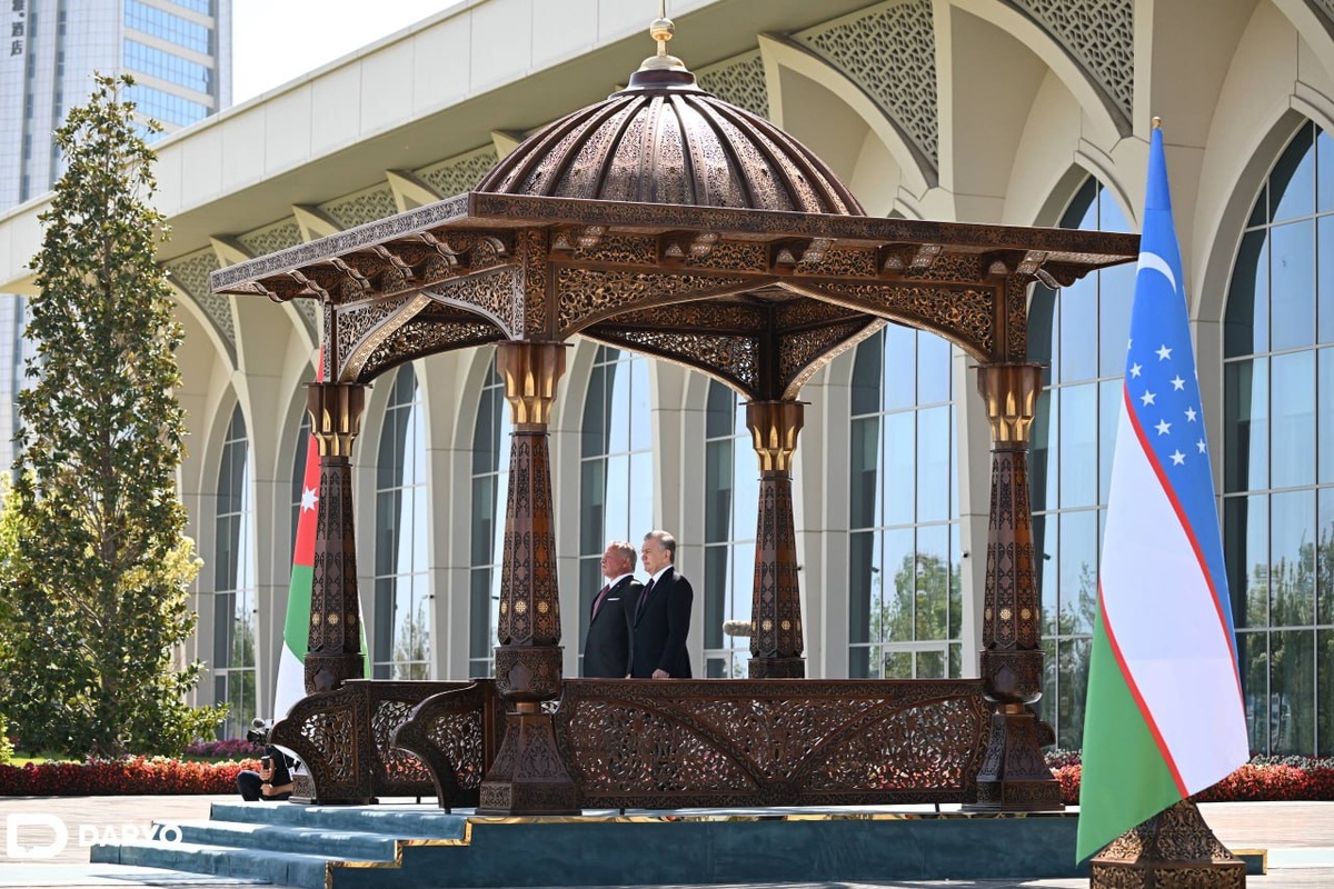 🇯🇴🇺🇿 Iordaniya podshohi Samarqandda tantanali kutib olindi Kongress markazi binosi oldidagi maydonda faxriy qorovul saf tortdi. Shavkat Mirziyoyev Abdulla II ibn al-Husaynni qarshi olib, shohsupaga taklif etdi. Harbiy orkestr ikki mamlakat davlat madhiyalarini ijro etdi. @daryolive