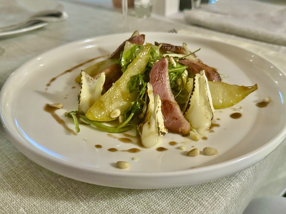 Позвольте себе насладиться настоящим гастрономическим шедевром! Этот салат – настоящее воплощение элегантности и утонченности. Сочные, ароматные кусочки утиной грудки, обжаренные до идеальной корочки, прекрасно дополняются сладостью спелой груши. А кремовый, тающий во рту сыр камамбер придает блюду неповторимую глубину и бархатистость. Все это великолепие подается на подушке из свежих, хрустящих листьев салата, заправленных легким, пикантным соусом, который подчеркивает каждый ингредиент. Этот салат – идеальный выбор для особого случая или просто для того, чтобы побаловать себя чем-то по-настоящему особенным.
