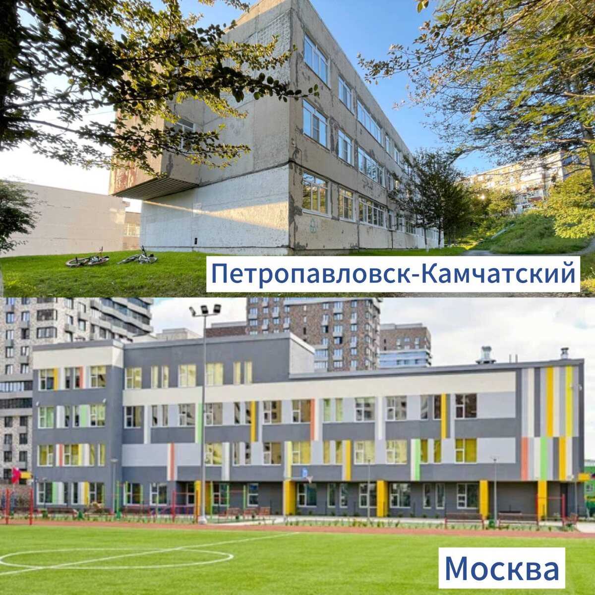 «Две реальности, одно будущее?»: ЛДПР показывает школьное неравенство на Камчатке Что видят дети каждый день, отправляясь в школу? На фото координатор первичного отделения Виктор Павлов наглядно демонстрирует, как сильно отличаются условия обучения в Петропавловске-Камчатском и Москве. С одной стороны – обветшалое здание, требующее капитального ремонта, с другой – современная, благоустроенная школа, о которой многие могут только мечтать. Хватит закрывать глаза на эту проблему. ЛДПР требует: • Равных возможностей для каждого ребенка! • Достойных условий обучения в каждой школе! • Справедливого финансирования образования! А как выглядит школа, в которой учится ваш ребенок? Делитесь фото в комментариях! #ЛДПР #ЛДПРКамчатка #Камчатка #Школа #Образование #Неравенство #Регионы #Москва #Дети #Будущее