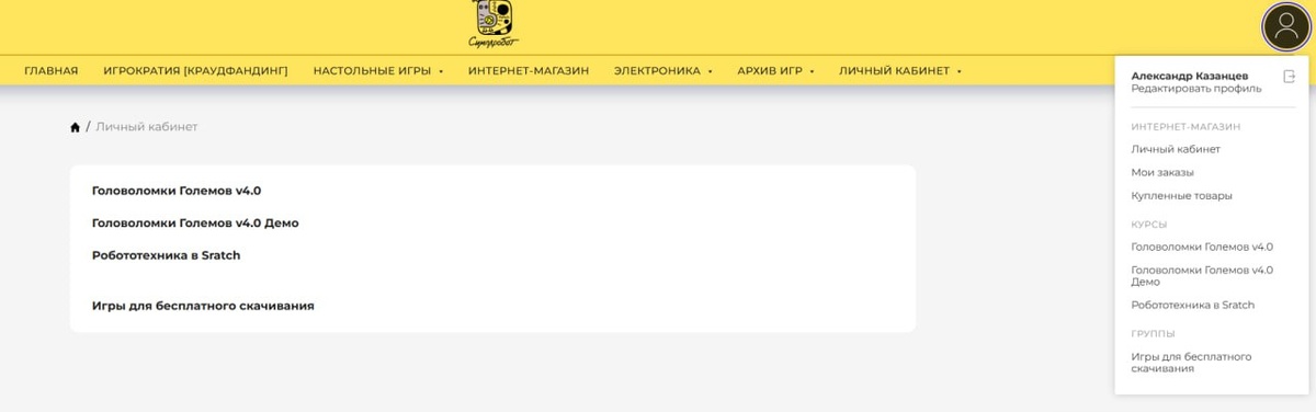 На нашем сайте https://simplrobot.ru при заказе обязательна регистрация в личном кабинете. Вход в него по e-mail, на который отправляется в течение 1 минуты код авторизации. В ЛК вы можете найти: - информацию о ваших заказах с августа 2025 года и их статус. - доступные или купленные вами курсы - доступные вам закрытые страницы и разделы В личный кабинет можно попасть через соответствующее меню и там же зарегистрироваться. После входа достаточно нажать на знак «человечка» в правом верхнем углу. P.S. Если вы покупали игры в нашем интернет-магазине или оплачивали доставку краудфандинга, у вас уже есть доступ к личному кабинету по e-mail.