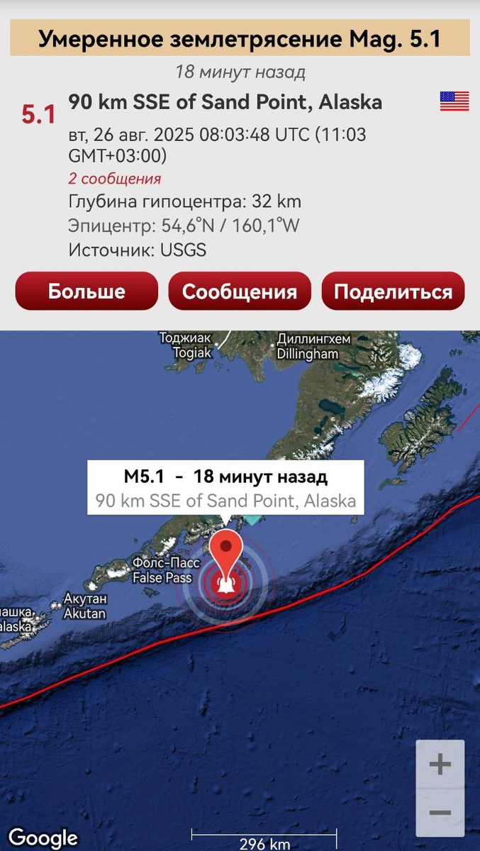 Через 9 дней Аляску в этом месте тряхнуло,